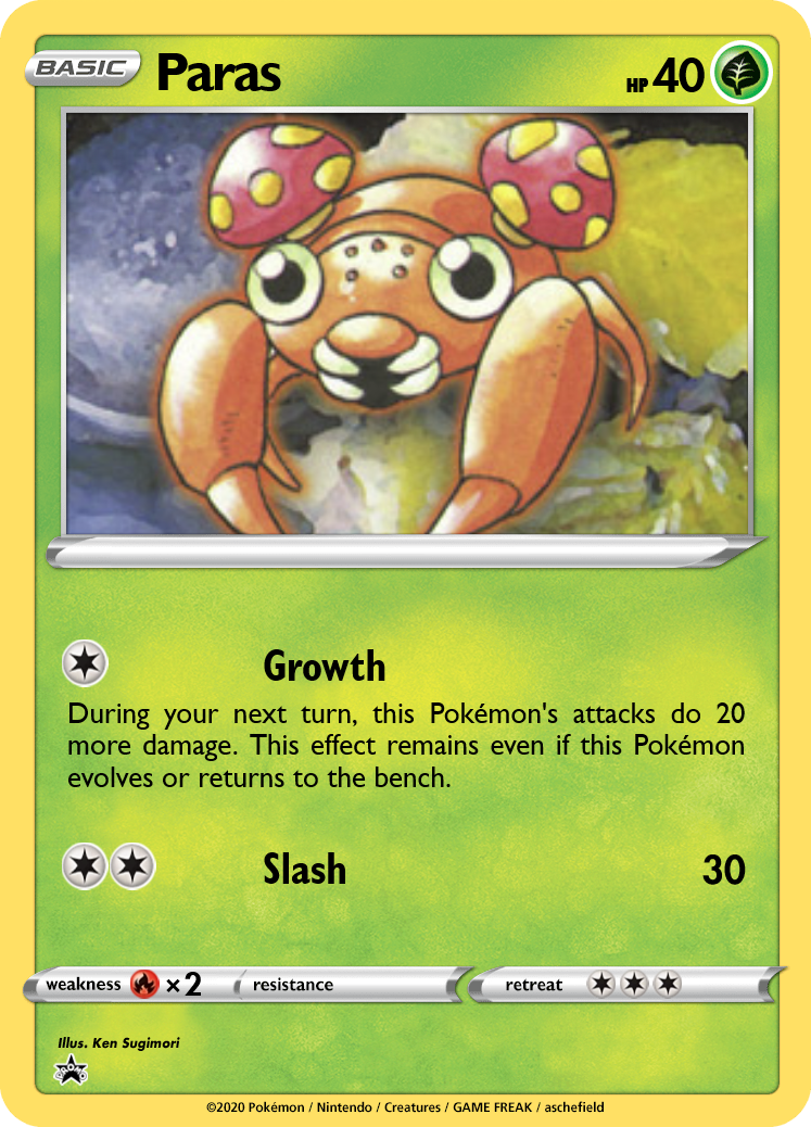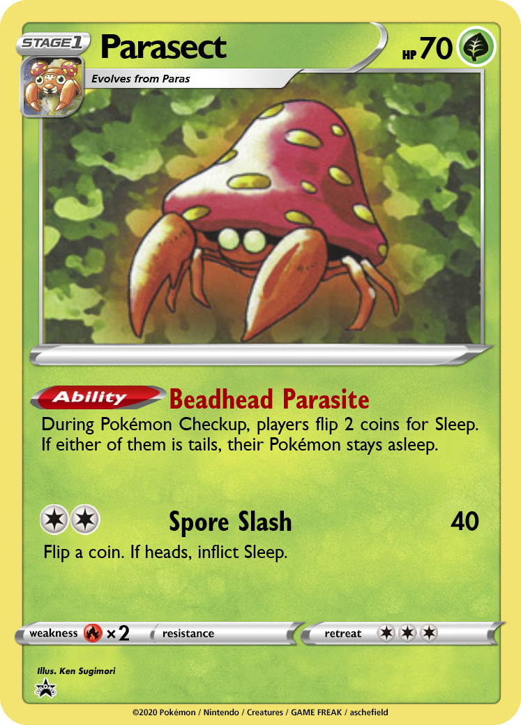 Paras is strictly worse than Scyther, but Parasect now rewards players for the investment additional damage alongside a chance to inflict Sleep. Bedhead Parasite works with other sources of sleep as well, such as Victreebel. The high retreat cost makes this line searchable by Poké Maniac.