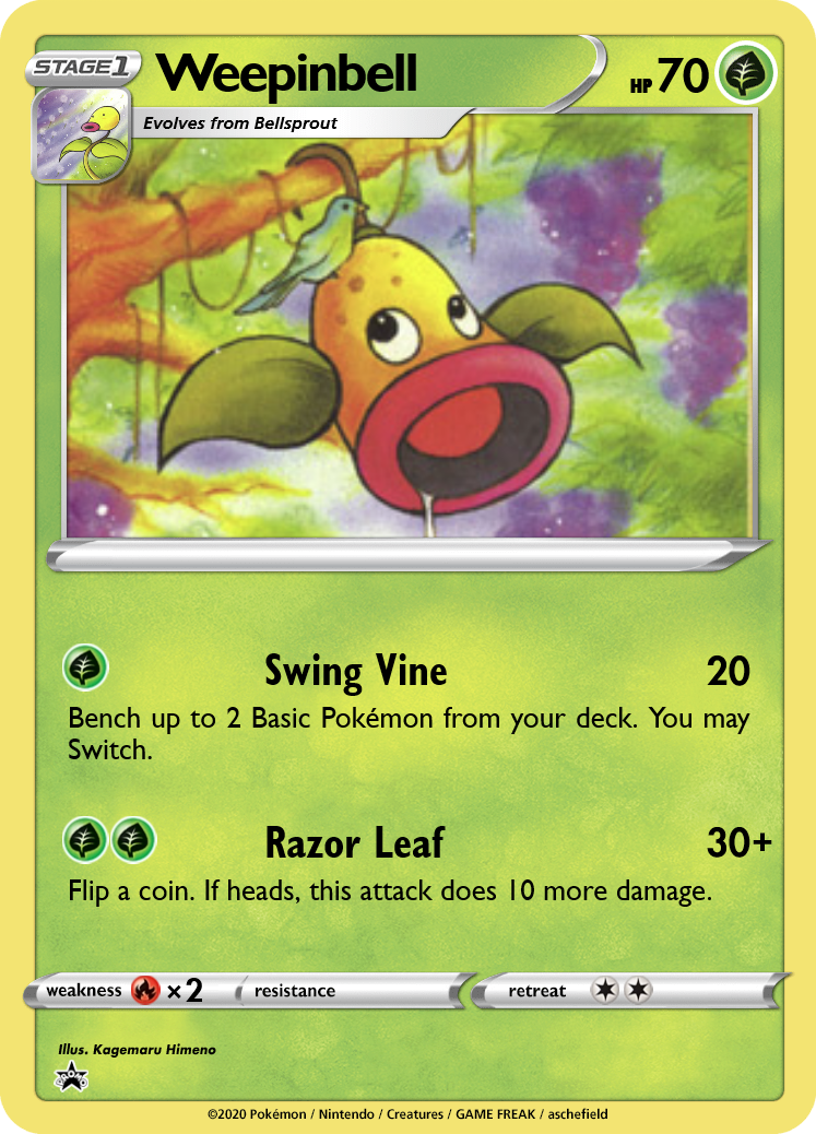 Bellsprout and Weepinbell have effects inspired by Strike and Run Dunsparce. Even though neither is quite as good, you can more consistently find your starters or bench a Pokémon with free retreat to act as a wall for a turn before switching in your primary attacker.