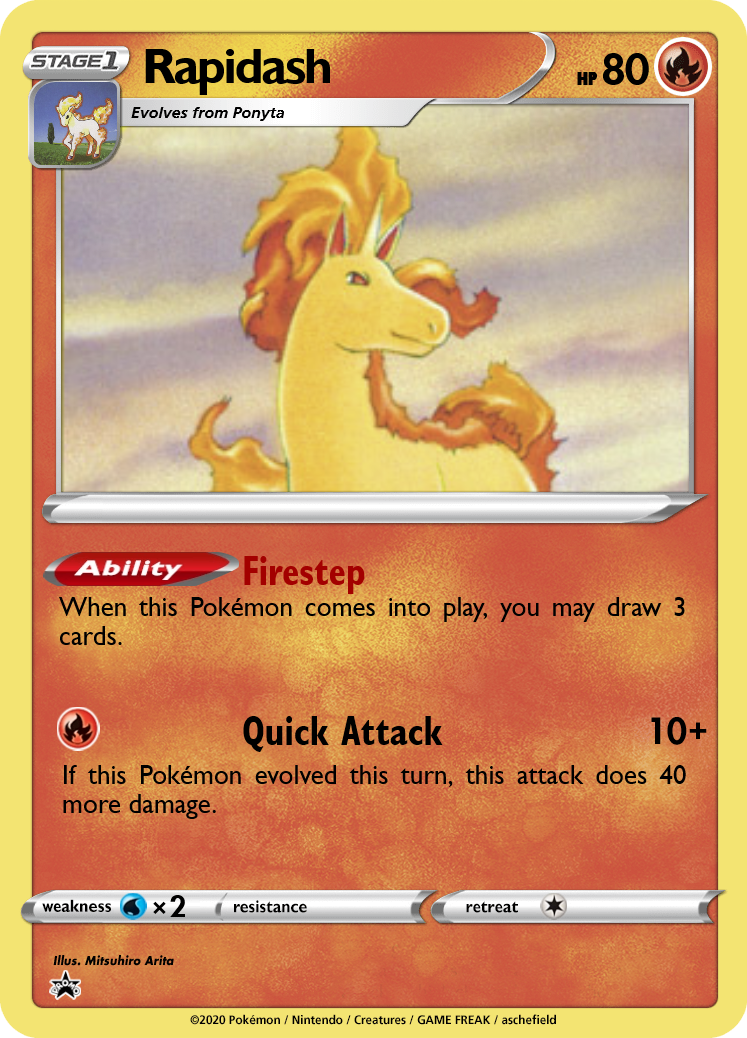 Both of these lines have parallels to Fresh Beginning's Scyther. Ponyta exchanges Swords Dance and a bit of HP for a small support ability, which can be reused by returning it to the hand with Scoop Up or Mr. Fuji. This works especially well when considering Rapidash's attack!