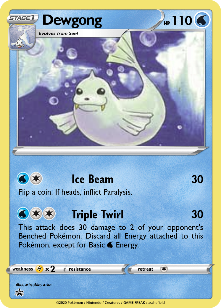 While not quite Earthquake, Dewgong is certainly a Pokémon with a focus on bench damage. Triple Twirl is inspired by UNB 45. Triple Twirl can come out turn 2 with DCE or Double Rainbow, but you'll have to discard it afterwards.