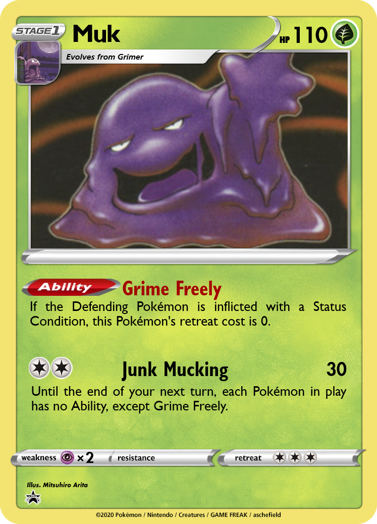 The original Muk's Toxic Gas ability is controversial, but Ability Lock is the card's legacy, which I wanted to keep in tact. By placing it on an attack, players now need to commit to it, and Muk leaves itself vulnerable.