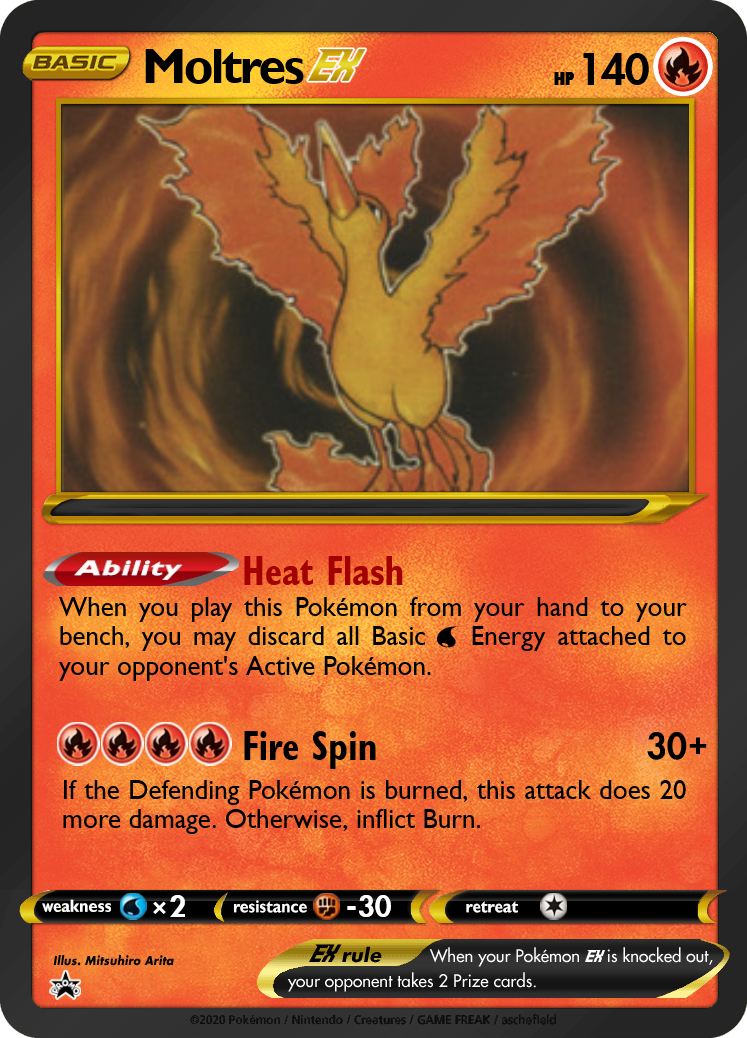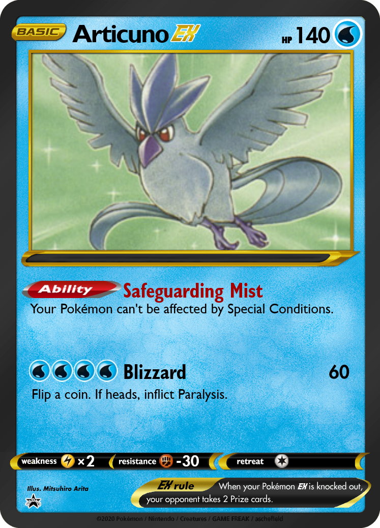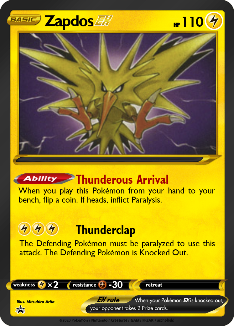 My initial draft also gave all 3 birds a 2-cost attack that dealt 20 damage + 10 to all benched Pokémon. However, as I thought about the role I wanted these cards to play, giving them a generic value attack felt wrong. We want to make sure Big Basics don't dwarf everything else in the format, yet at the same time, Legendary Pokémon rightfully should have a big impact.