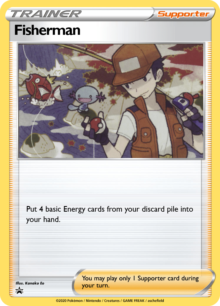 Channeler is a combeack card similar to Raihan, except it can bring a Stage 2 back right from the discard pile. Fisherman fits bets in decks like Rain Dance, bringing back energy that can immediately be accelerated into play. Poké Maniac has a few different targets, and decks running multiple high retreat Pokémon can make good use of it.